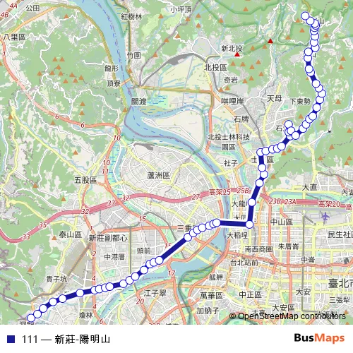 Bus 111 - 新莊-陽明山 Schedule in Taipei