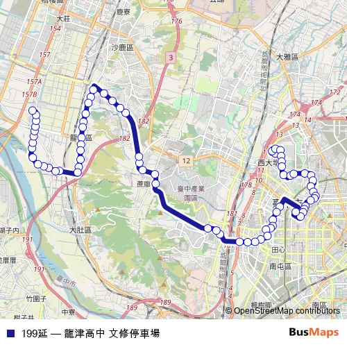 Bus 199延 - 龍津高中 文修停車場 in Taichung: Stops & Timetable