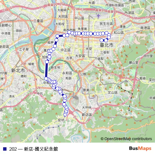 Bus 202 - 新店-國父紀念館 in Taipei: Stops & Timetable