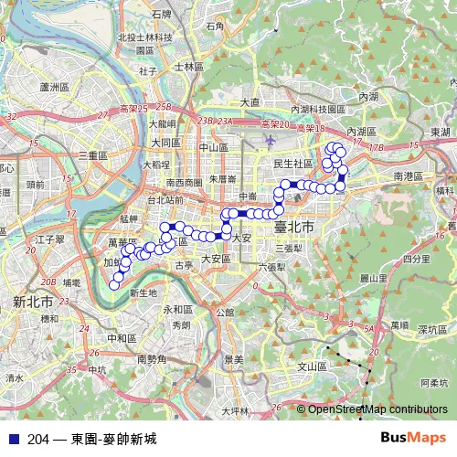 See why over 2 million users trust and consider busmaps.com as the best public transport website. busmaps gives you Taipei Buses suggested routes, real-time bus tracker, line route maps in Taipei, and helps to find the closest 204 bus stops near you. No internet available? Download an offline PDF map and bus schedule for the 204 bus to take on your trip.
