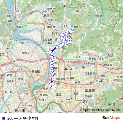 See why over 2 million users trust and consider busmaps.com as the best public transport website. busmaps gives you Taipei Buses suggested routes, real-time bus tracker, line route maps in Taipei, and helps to find the closest 206 bus stops near you. No internet available? Download an offline PDF map and bus schedule for the 206 bus to take on your trip.