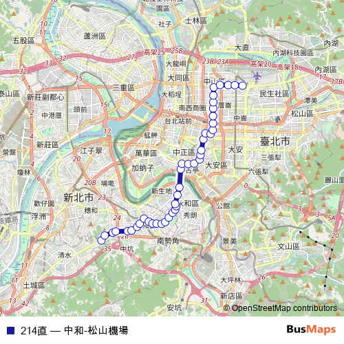 See why over 2 million users trust and consider busmaps.com as the best public transport website. busmaps gives you Taipei Buses suggested routes, real-time bus tracker, line route maps in Taipei, and helps to find the closest 214直 bus stops near you. No internet available? Download an offline PDF map and bus schedule for the 214直 bus to take on your trip.