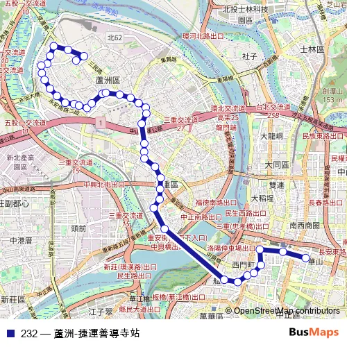 Click here to view the nearest 232 - 蘆洲-捷運善導寺站 bus stop.