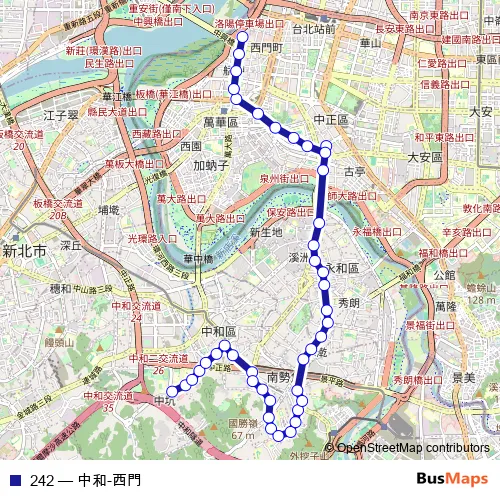 Click here to view the nearest 242 - 中和-西門 bus stop.