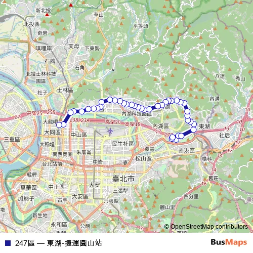 Click here to view the nearest 247區 - 東湖-捷運圓山站 bus stop.
