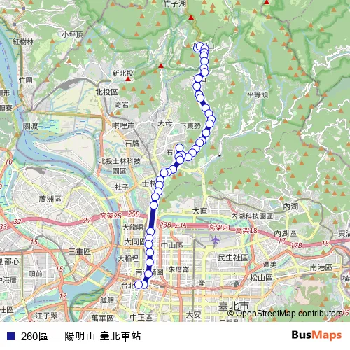 Click here to view the nearest 260區 - 陽明山-臺北車站 bus stop.