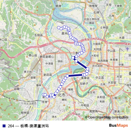 Bus 264 - 板橋-捷運蘆洲站 Schedule in Taipei