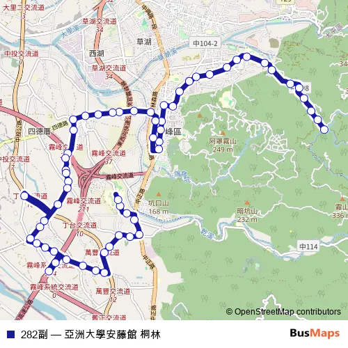 Click here to view the nearest 282副 - 亞洲大學安藤館 桐林 bus stop.