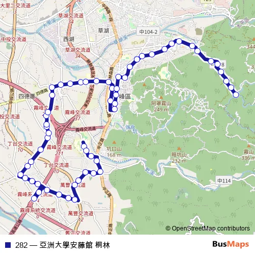 Bus 282 - 亞洲大學安藤館 桐林: Full Schedule in Zhongxing New Village