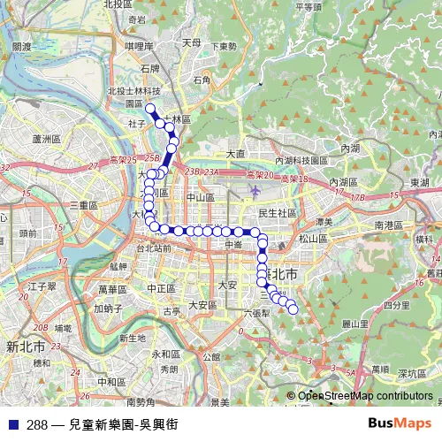 See why over 2 million users trust and consider busmaps.com as the best public transport website. busmaps gives you Taipei Buses suggested routes, real-time bus tracker, line route maps in Taipei, and helps to find the closest 288 bus stops near you. No internet available? Download an offline PDF map and bus schedule for the 288 bus to take on your trip.