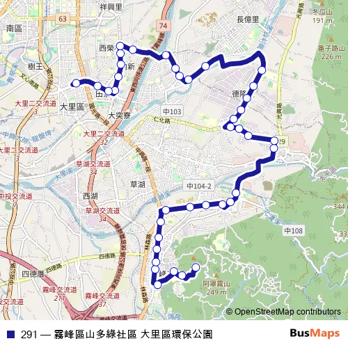 Click here to view the nearest 291 - 霧峰區山多綠社區 大里區環保公園 bus stop.