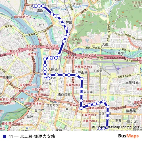 Bus 41 - 北士科-捷運大安站: Full Schedule in Taipei