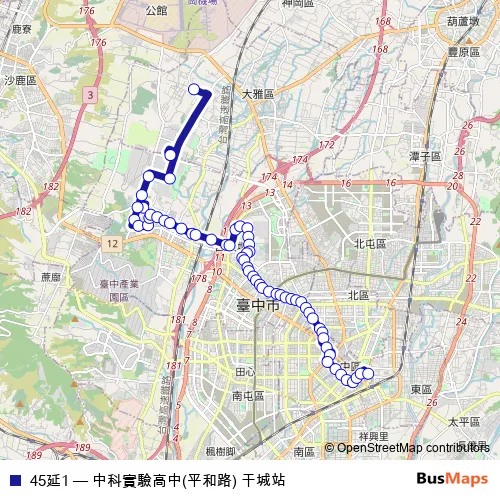 Bus 45延1 - 中科實驗高中(平和路) 干城站 Schedule in Taichung