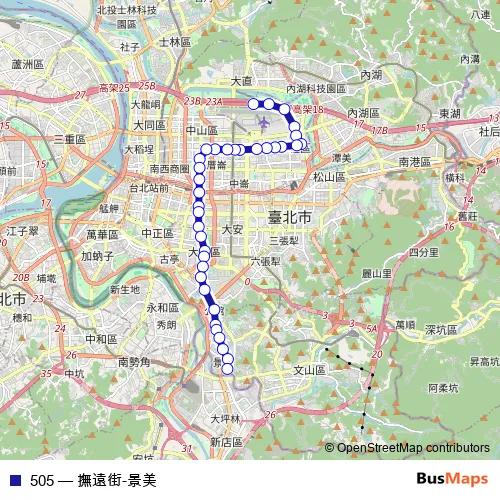 Bus 505 - 撫遠街-景美 in Taipei: Stops & Timetable