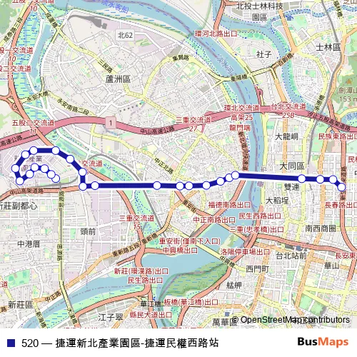 520 Bus - 捷運新北產業園區-捷運民權西路站