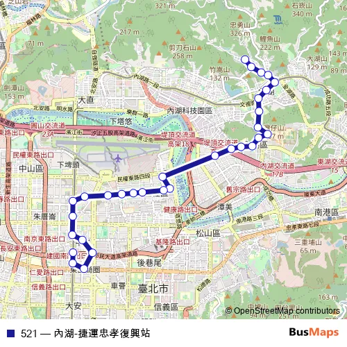 Click here to view the nearest 521 - 內湖-捷運忠孝復興站 bus stop.