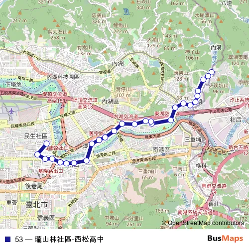Bus 53 - 瓏山林社區-西松高中 Schedule in Taipei