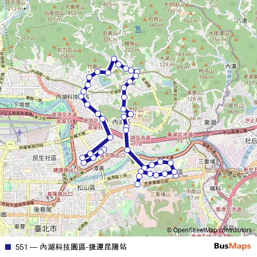 See why over 2 million users trust and consider busmaps.com as the best public transport website. busmaps gives you Taipei Buses suggested routes, real-time bus tracker, line route maps in Taipei, and helps to find the closest 551 bus stops near you. No internet available? Download an offline PDF map and bus schedule for the 551 bus to take on your trip.