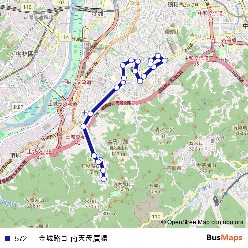 Bus 572 - 金城路口-南天母廣場 in Banqiao: Stops & Timetable