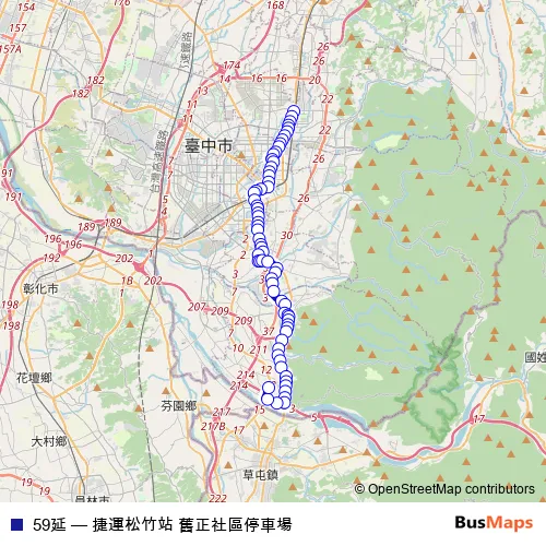 See why over 2 million users trust and consider busmaps.com as the best public transport website. busmaps gives you Taichung Buses suggested routes, real-time bus tracker, line route maps in Taichung, and helps to find the closest 59延 bus stops near you. No internet available? Download an offline PDF map and bus schedule for the 59延 bus to take on your trip.
