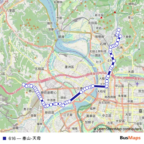 See why over 2 million users trust and consider busmaps.com as the best public transport website. busmaps gives you Taipei Buses suggested routes, real-time bus tracker, line route maps in Taipei, and helps to find the closest 616 bus stops near you. No internet available? Download an offline PDF map and bus schedule for the 616 bus to take on your trip.