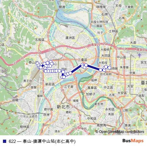 Bus 622 - 泰山-捷運中山站(志仁高中): Full Schedule in Taipei