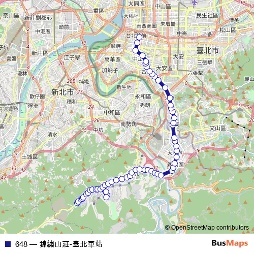 See why over 2 million users trust and consider busmaps.com as the best public transport website. busmaps gives you Taipei Buses suggested routes, real-time bus tracker, line route maps in Taipei, and helps to find the closest 648 bus stops near you. No internet available? Download an offline PDF map and bus schedule for the 648 bus to take on your trip.