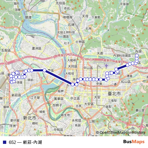 See why over 2 million users trust and consider busmaps.com as the best public transport website. busmaps gives you Taipei Buses suggested routes, real-time bus tracker, line route maps in Taipei, and helps to find the closest 652 bus stops near you. No internet available? Download an offline PDF map and bus schedule for the 652 bus to take on your trip.