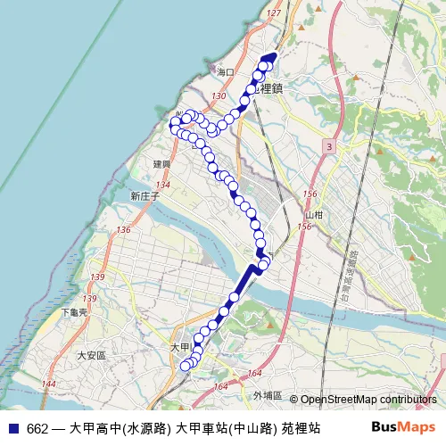 Click here to view the nearest 662 - 大甲高中(水源路) 大甲車站(中山路) 苑裡站 bus stop.
