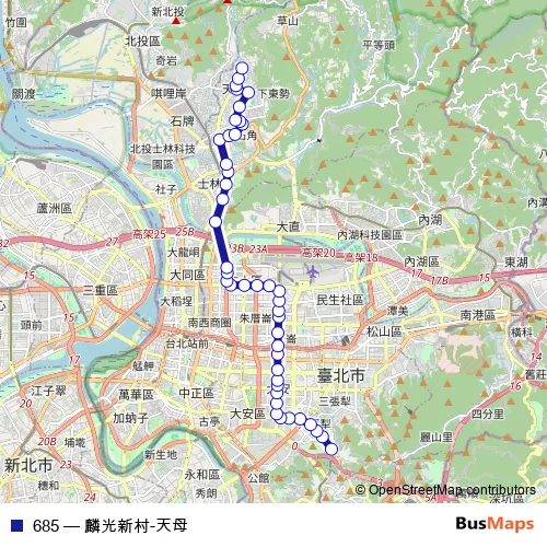 See why over 2 million users trust and consider busmaps.com as the best public transport website. busmaps gives you Taipei Buses suggested routes, real-time bus tracker, line route maps in Taipei, and helps to find the closest 685 bus stops near you. No internet available? Download an offline PDF map and bus schedule for the 685 bus to take on your trip.