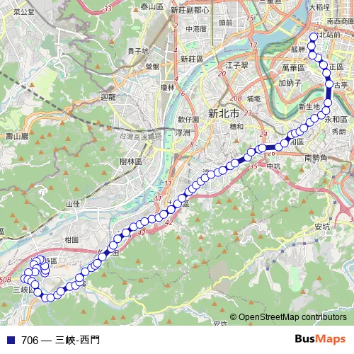 Bus 706 - 三峽-西門 in Taipei: Stops & Timetable