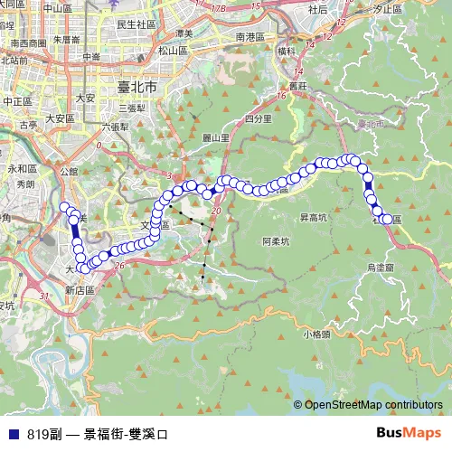Bus 819副 - 景福街-雙溪口 in Taipei: Stops & Timetable