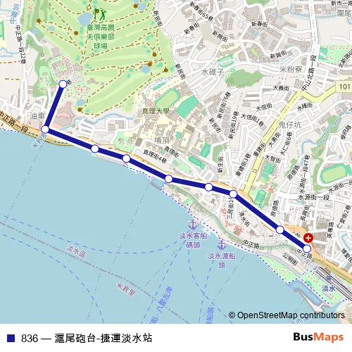 Click here to view the nearest 836 - 滬尾砲台-捷運淡水站 bus stop.