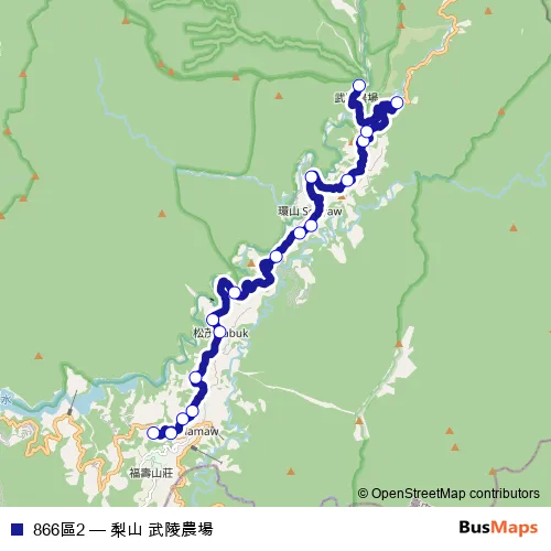 Click here to view the nearest 866區2 - 梨山 武陵農場 bus stop.