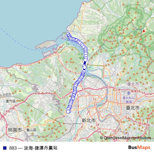 See why over 2 million users trust and consider busmaps.com as the best public transport website. busmaps gives you Taipei Buses suggested routes, real-time bus tracker, line route maps in Taipei, and helps to find the closest 883 bus stops near you. No internet available? Download an offline PDF map and bus schedule for the 883 bus to take on your trip.