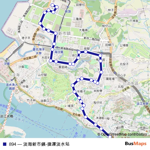 Click here to view the nearest 894 - 淡海新市鎮-捷運淡水站 bus stop.