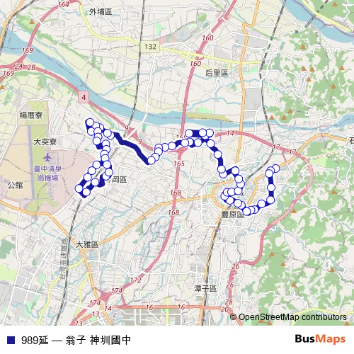 See why over 2 million users trust and consider busmaps.com as the best public transport website. busmaps gives you Fengyuan Buses suggested routes, real-time bus tracker, line route maps in Fengyuan, and helps to find the closest 989延 bus stops near you. No internet available? Download an offline PDF map and bus schedule for the 989延 bus to take on your trip.