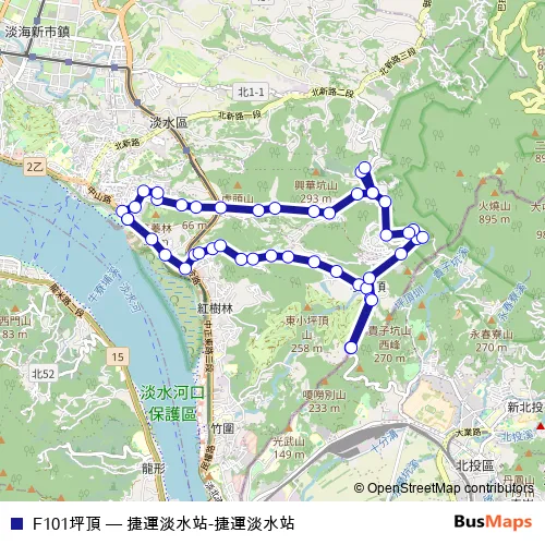 Click here to view the nearest F101坪頂 - 捷運淡水站-捷運淡水站 bus stop.