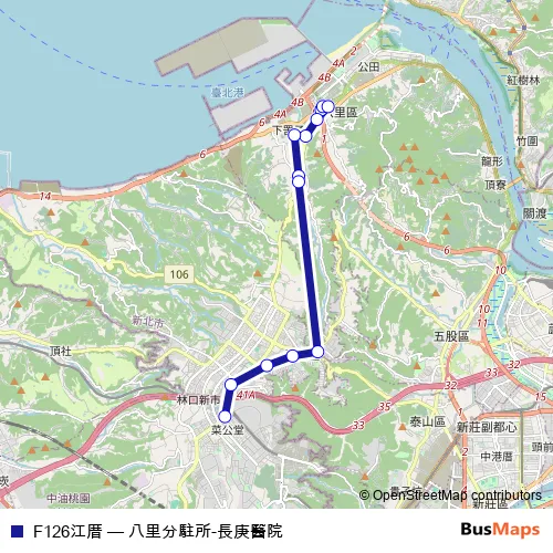 Click here to view the nearest F126江厝 - 八里分駐所-長庚醫院 bus stop.