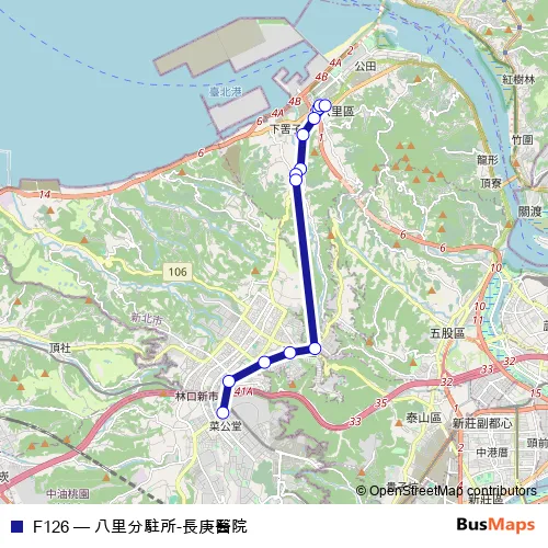Bus F126 - 八里分駐所-長庚醫院: Full Schedule in Taipei