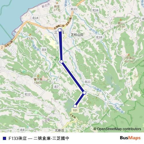 See why over 2 million users trust and consider busmaps.com as the best public transport website. busmaps gives you Taipei Buses suggested routes, real-time bus tracker, line route maps in Taipei, and helps to find the closest F133後店 bus stops near you. No internet available? Download an offline PDF map and bus schedule for the F133後店 bus to take on your trip.