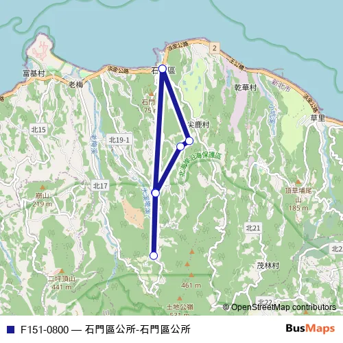 Click here to view the nearest F151-0800 - 石門區公所-石門區公所 bus stop.