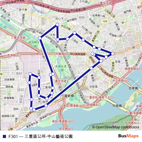 Click here to view the nearest F301 - 三重區公所-中山藝術公園 bus stop.