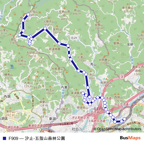 Click here to view the nearest F909 - 汐止-五指山森林公園 bus stop.