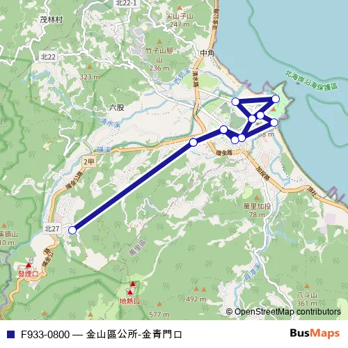 Click here to view the nearest F933-0800 - 金山區公所-金青門口 bus stop.