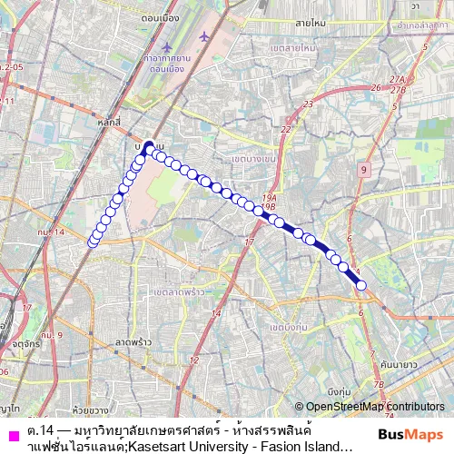 จุดขึ้นลง;visual stop. ต.14 (มหาวิทยาลัยเกษตรศาสตร์ - ห้างสรรพสินค้าแฟชั่นไอร์แลนด์;Kasetsart University - Fasion Island Department Store) is operational during everyday.