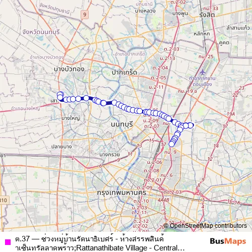 Bus ต.37 - ช่วงหมู่บ้านรัตนาธิเบศร์ - ห้างสรรพสินค้าเซ็นทรัลลาดพร้าว;Rattanathibate Village - Central Plaza Ladprao Department Store in Mueang Nonthaburi: Stops & Timetable