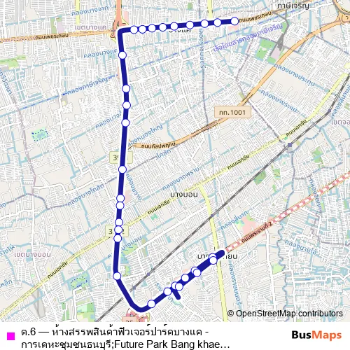 Click here to view the nearest ต.6 - ห้างสรรพสินค้าฟิวเจอร์ปาร์คบางแค - การเคหะชุมชนธนบุรี;Future Park Bang khae Department Store - Thonburi Housing bus stop.