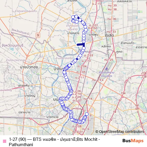 Bus 1-27 (90) - BTS หมอชิต - ปทุมธานี;Bts Mochit - Pathumthani Schedule in Mueang Nonthaburi