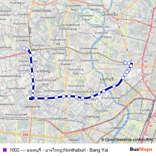 Bus 1002 - นนทบุรี - บางใหญ่;Nonthaburi - Bang Yai in Mueang Nonthaburi: Stops & Timetable